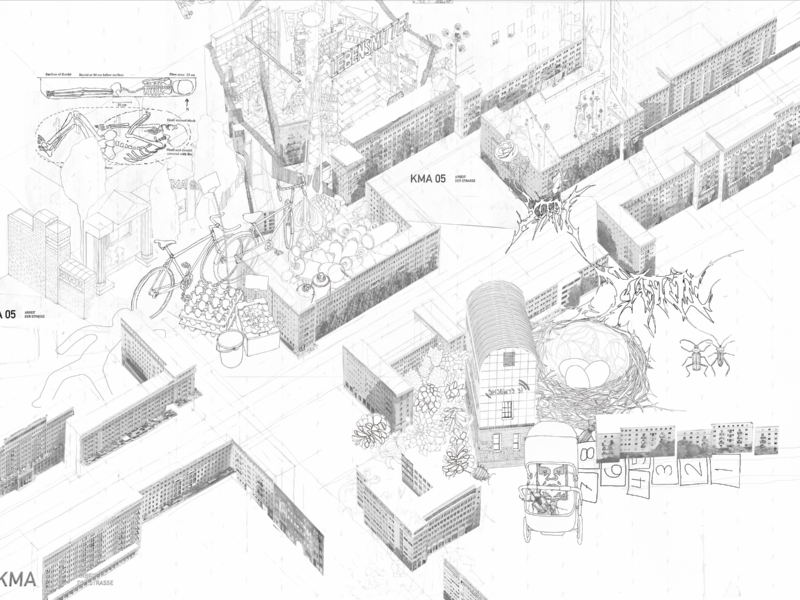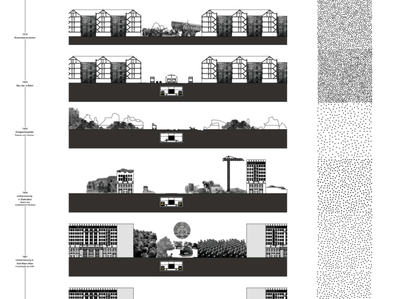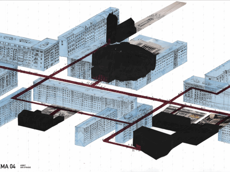 Die Umgebung des heutigen Molkenmarkts: mittelalterlich anmutenden Stadthäuser in Plattenbauweise, Shoppingmallfassaden in rosa Sichtbetonrüschen, ein als Barockschloss getarnter Museumsneubau, elfgeschossige Wohnriegel am Fernsehturm, ein Botschaftsgebäude aus Limousinenglasfenstern an der Spree. Zwischen den Fragmenten aus Kriegszerstörung und sozialistischem Wiederaufbau liegt heute als Resultat eine große Verkehrsader, in der sich der Blick weitet und die bald bebaut werden soll. Wir untersuchen und entwerfen im Studio mögliche Zukünfte aus den Freilegungen der Zeitschichten und stellen uns die Frage, welch eine Stadt für alle an diesem dicht befahrenen, bewohnten, besuchten und erinnerten Ort denkbar ist. Moderne, Gründerzeit, Instandbesetzung, Brutalismus, Funktionalismus, Real Estate Development – welche Architektur kann ausdrücken, wie wir in Zukunft leben wollen? Welche Rolle spielen Meinwohl, Deinwohl und Gemeinwohl im Programm der Stadt von Morgen?